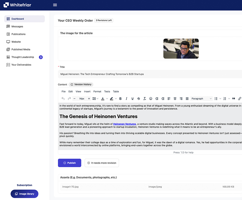 Whitefriar secures top-tier press coverage that positions you as an authority, builds trust, and opens doors to paid opportunities.